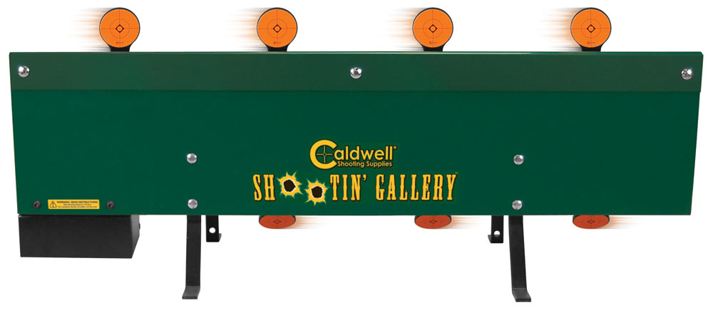 Caldwell Shootin' Gallery Motorized Rimfire Metal Target Moving targets can be a shooter's biggest challenge and Caldwell's Shootin' Gallery Motorized Rimfire Metal Target delivers more fun than a carnival midway. The motor-driven, interactive system allows you to shoot a steady stream of moving targets without pause. Hit 2-inch targets fold over and resent as they re-emerge from the other side of the rotation. Includes a rechargeable battery and charger. Runs 4 to 6 hours on a single charge. ($300; www.btibrands.com)